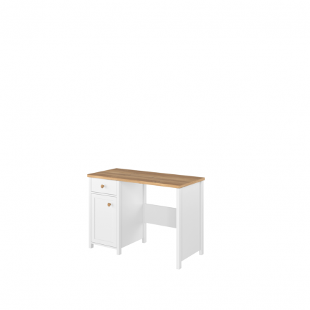 Wygodne w użytkowaniu i eleganckie biurko stworzone z myślą o dziewczynkach lubiących wnętrza w klasycznym stylu. Oryginalny styl mebla to zasługa połączenia subtelnej, białej formy z blatem i dodatkami w kolorze ciepłego drewna.