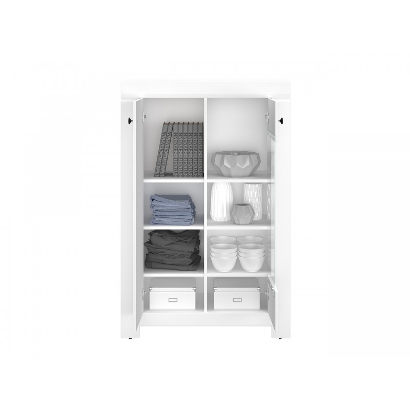 Z kolekcją LAHTI zaaranżujemy wnętrze pokoju dziennego, młodzieżowego lub sypialnię. Matowe, białe meble wzbogacone zostały frezowaną listwą, dzięki czemu prosta forma nabrała delikatnego i współczesnego wyglądu. Fronty wykonane zostały z wysokiej jakości płyty MDF- idealnie harmonizują z listwą okalającą. Czarne, metalowe uchwyty nadają meblom charakteru a pojemne szuflady z funkcją pełnego wysuwu oraz drzwi szafek z cichym domykiem dają gwarancję zadowolenia podczas codziennego użytkowania.