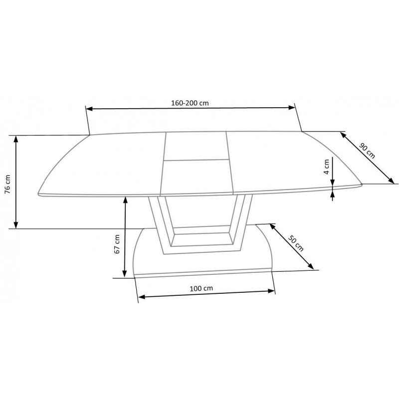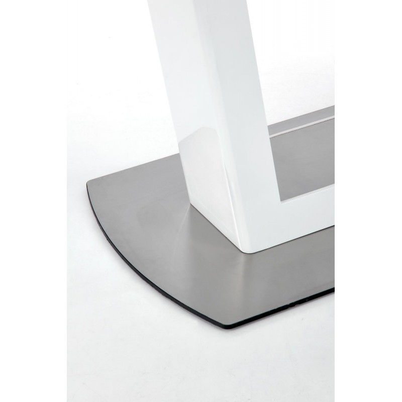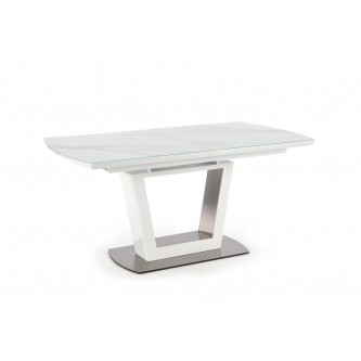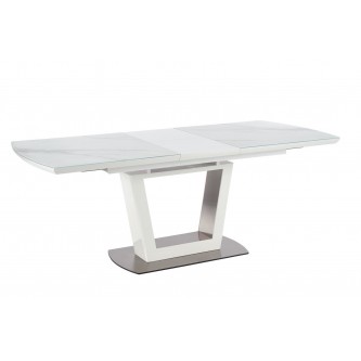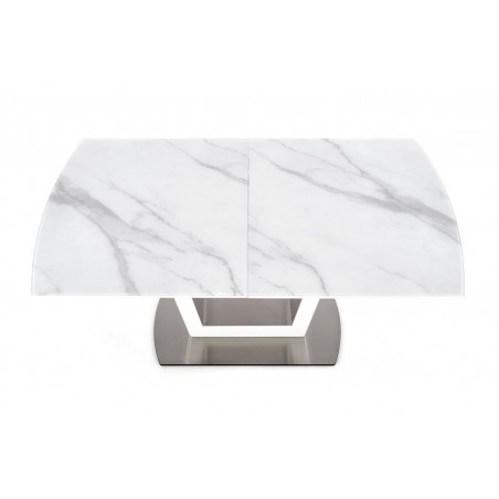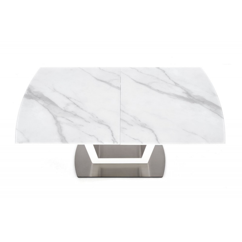 stół rozkładany, wymiary: 160-200/90/76 cm, materiał: szkło / MDF lakierowany / stal nierdzewna, kolor: biały marmur - biały