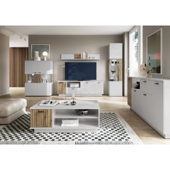 Dla każdego miłośnika designu istotne jest posiadanie odpowiedniego mebla, który spełnia wszystkie potrzeby funkcjonalne. Z kolekcją Alverno stworzysz wnętrze zgodne z najnowszymi trendami. Asymetryczne bryły, delikatne ryfle z nadrukiem cyfrowym, prosta geometryczna forma, przeszklenia boków brył i minimalistyczne uchwyty, tworzą unikalny zestaw, który łączy funkcjonalność z nowoczesnością. Ryfle w kolorze drewna umieszczone na jasnym dekorze nadają kolekcji lekki i nowoczesny wygląd.