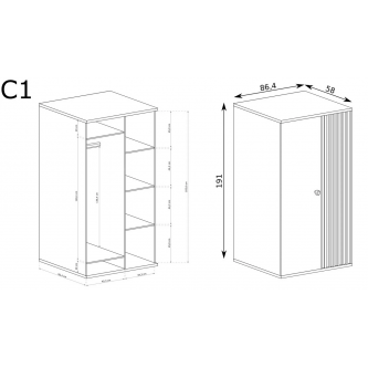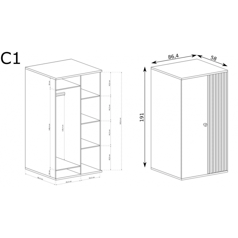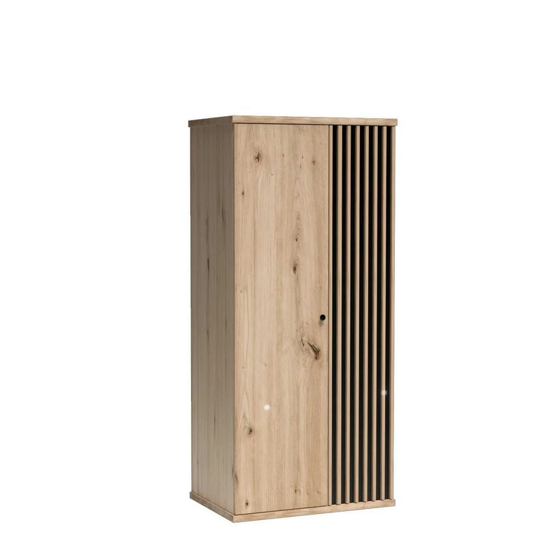 Ozdobne listwy w postaci lameli dodają szafie ciekawego charakteru, drobny mały uchwyt to wart uwagi detal, który idealnie wtapia się w kolor wybarwienia szafy jakim jest ARTISAN.