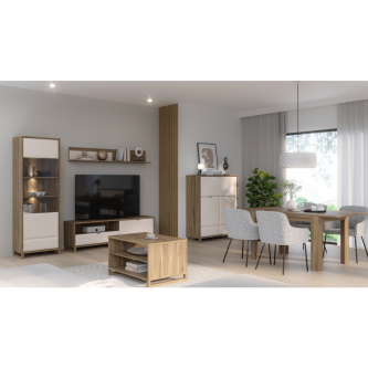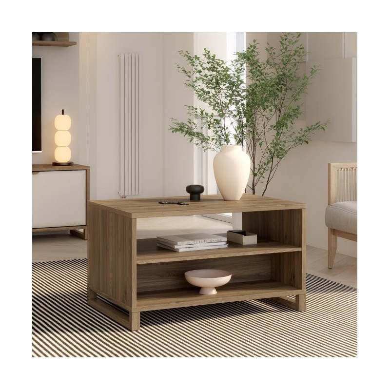 Stolik kawowy MAREDA to elegancki i praktyczny mebel, który doskonale sprawdzi się w salonie. Jego kompaktowa forma i estetyczny wygląd czynią go idealnym miejscem na filiżankę kawy, książkę czy dekoracje, wprowadzając do wnętrza przytulną atmosferę.