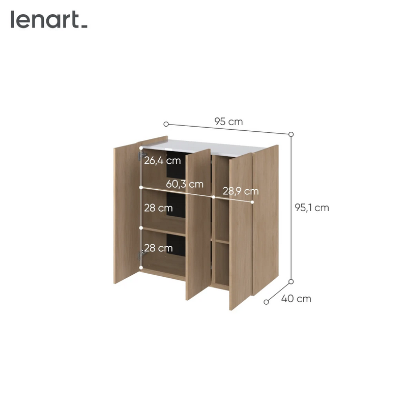 - Możliwość wyposażenia komody w dwie półki dostępne w opcji dodatkowej: do komody EA-03 świetnie sprawdzą się półki EA-04 oraz EA-05.