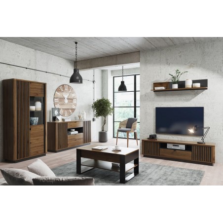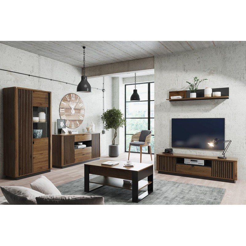 Ta nowoczesna kolekcja z lamelami idealnie sprawdzi się w salonie czy sypialni. W zależności od wyboru wersji kolorystycznej nada wnętrzu powagi bądź ciepła.