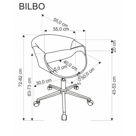 Fotel obrotowy BILBO o wymiarach: 55/55/72-82/43-53 cm;