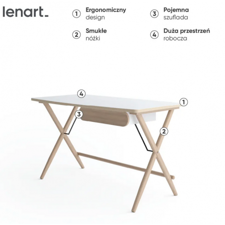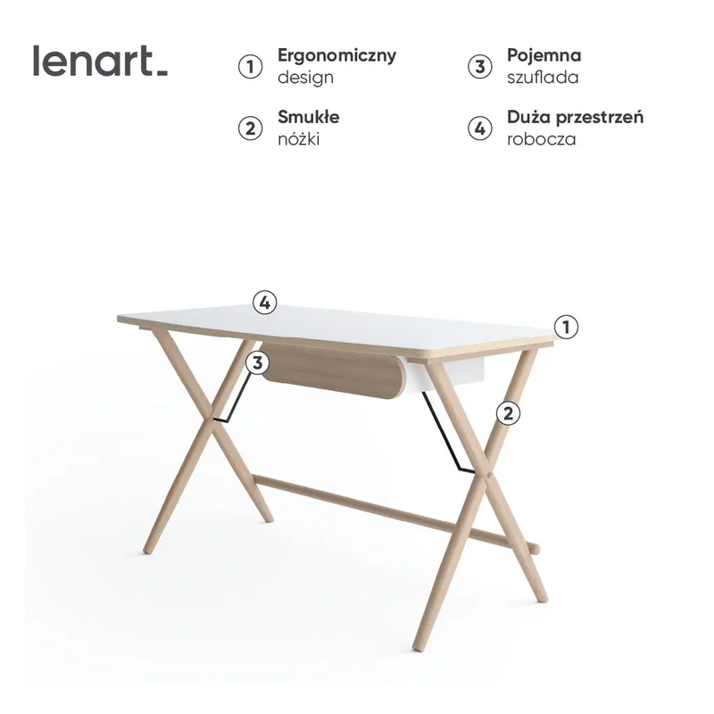 Jednym z najważniejszych aspektów przy wyborze biurka do pokoju jest ergonomia. Odpowiednio dobrane biurko zapewnia komfort pracy przez wiele godzin, wspierając prawidłową postawę ciała. Ergonomiczne biurka są zaprojektowane tak, aby zminimalizować zmęczenie i przeciążenie mięśni, co jest kluczowe dla zdrowia i wydajności. A wyjątkowy wygląd dębowych nóżek sprawia, że wnętrze staje się unikatowe.