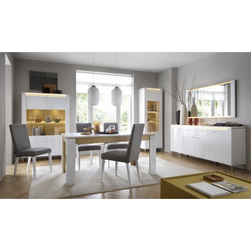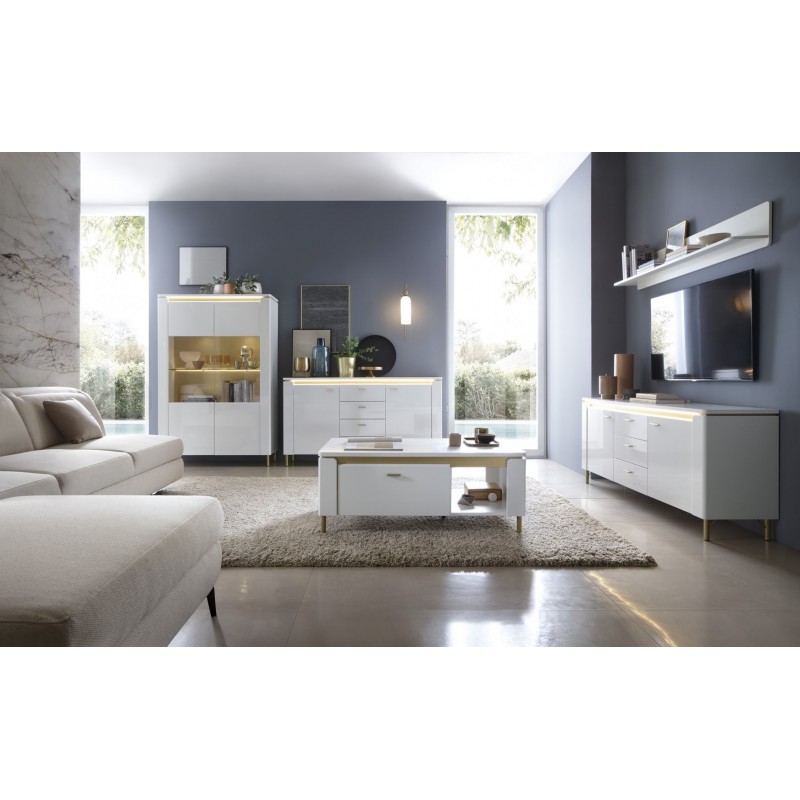 Relaks w salonie, urządzonym w eleganckim, nowoczesnym stylu pozwoli Ci zyskać mnóstwo pozytywnej energii. Wybierz praktyczne, stylowo prezentujące się elementy wyposażenia, dzięki którym zyskasz efekt idealnie dopracowanego, luksusowo i nowocześnie prezentującego się pomieszczenia. Połysk, biel, odcień złota i nowoczesne, konstrukcyjne podświetlenie LED zapewnią wyjątkowy wygląd wnętrza.