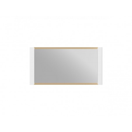 Lustro ścienne z kolekcji Lazio łączy w sobie nowoczesny, prosty kształt prostokąta z ponadczasowym odcieniem bieli. Front produktu powstał z płyty wiórowej laminowanej oraz MDF w odcieniach Biała Alpejska i Biały Połysk. Lustro zdobią elementy w kolorze złota oraz nowocześnie prezentujące się oświetlenie konstrukcyjne typu pasek LED TREND. Stylowe, duże lustro zapewni doskonały efekt dekoracyjny, spełni funkcję zwiększenia optycznego przestrzeni pomieszczenia i zwiększy jego funkcjonalność.