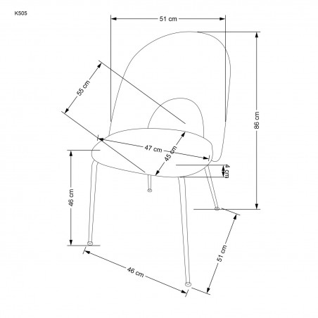 Krzesło K505 o wymiarach: 51/55/86/46 cm,