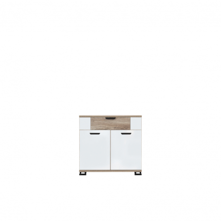 Komoda GT02 to mebel, który sprawdzi się zarówno w salonie, jadalni jak i pokoju dziennym. Komoda jest bardzo praktyczna i pojemna, posiada szufladę w górnej części mebla i podwójną zamykaną szafkę, które pozwolą uporządkować potrzebne drobiazgi. Atrakcyjny wygląd mebla nada Twojemu pomieszczeniu niepowtarzalnego charakteru. Modne połączenie kolorystyczne wraz z oryginalnym ryflowaniem na froncie przykuwa uwagę. Komoda idealnie sprawdzi się w konfiguracji z innymi bryłami z serii G-TE lub jako pojedynczy mebel, który można dopasować do własnej aranżacji pomieszczenia.