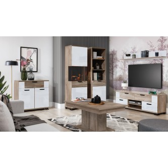 Mebel dostępny w kolorach: Biały Połysk/Dąb, Czarny Połysk/Dąb.