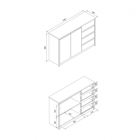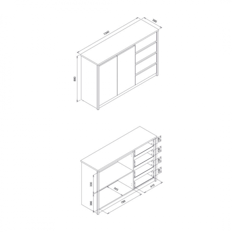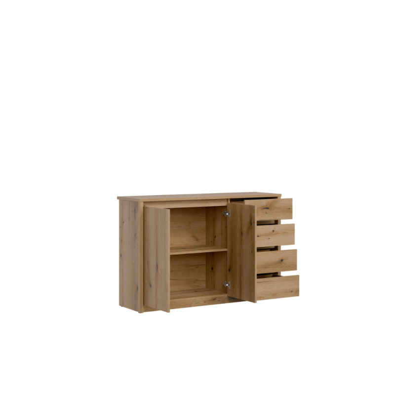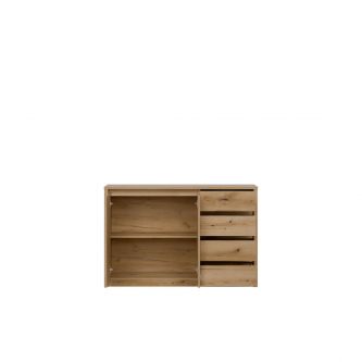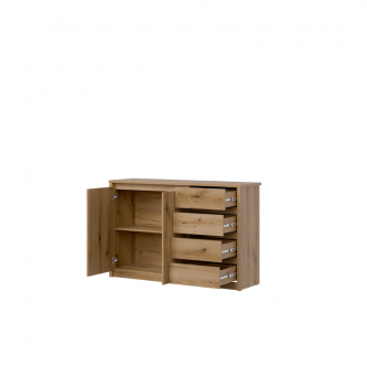 Komoda Intenso IT05 to idealny element, który doskonale uzupełnia kolekcję Intenso. Wyposażona w 4 pojemne szuflady oraz praktyczne półki ukryte za zamykanymi drzwiami, łączy elegancję z funkcjonalnością. Jej nowoczesny design i solidne wykonanie sprawiają, że jest doskonałym wyborem do każdego wnętrza. Idealna do przechowywania różnych przedmiotów, wprowadza porządek i estetykę do Twojego domu.