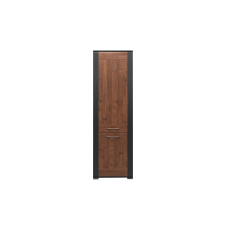 Szafka L/P NAOMI NA05 to uniwersalny i bardzo funkcjonalny mebel do każdego rodzaju pomieszczenia. Nie zajmuje wiele miejsca a jest jednocześnie bardzo pojemna wewnątrz. Szafka posiada dwoje drzwi otwieranych w prawo lub lewo do wyboru w opcji, a w środku pięć półek, które pomogą zorganizować garderobę w sypialni, tekstylia domowe w pokoju dziennym lub dodatkową zastawę w jadalni. Ciepłą kolorystykę korpusów i frontów w kolorze orzech podkreślają oryginalne detale wykończeniowe. Ozdobne delikatnie zaokrąglone listwy w kolorze wenge, stylowe drewniane nóżki z chromowaną wstawką oraz wygodne metalowe uchwyty nadają szafce nowoczesnego wyglądu. Szafka idealnie sprawdzi się w konfiguracji z innymi bryłami z serii NAOMI lub jako pojedynczy mebel, który można dopasować do własnej aranżacji pomieszczenia.