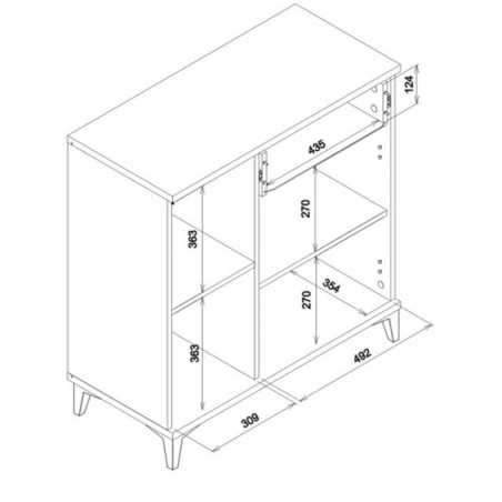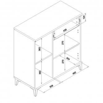Komoda SNOBI SB02 będzie doskonałym uzupełnieniem aranżacji salonu jak i każdego innego pomieszczenia. Komoda zawiera dwie pojemne zamykane wnęki z półkami oraz szufladę, które pozwolą rozsądnie uporządkować potrzebne drobiazgi. Jej nieduża szerokość umożliwia wkomponowanie mebla nawet w niewielką przestrzeń. Dzięki ryflowaniom na froncie szafki, kącik wypoczynkowy nabiera niezwykłego charakteru. Kolor naturalnego drewna wizualnie ociepla przestrzeń i wprowadza przytulny klimat. Niewątpliwym atutem komody są także ciemne nóżki, ułatwiające utrzymanie porządku, oraz nadające bryle lekkości. Minimalistyczna komoda idealnie sprawdzi się w konfiguracji z innymi bryłami z serii SNOBI lub jako pojedynczy mebel, który można dopasować do własnej aranżacji pomieszczenia.