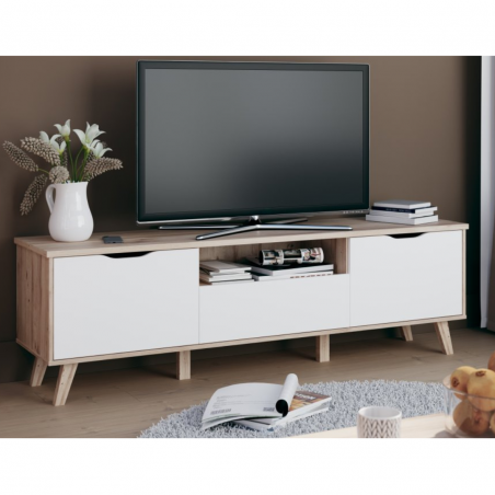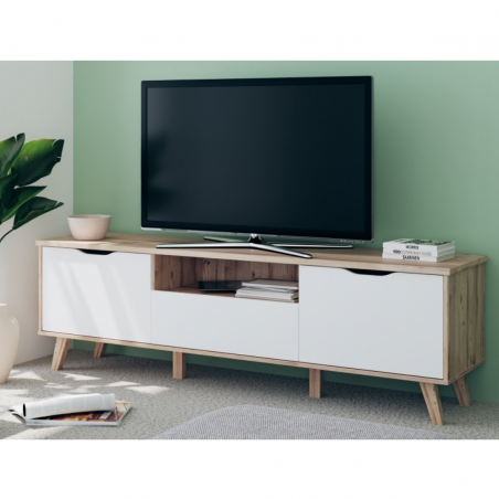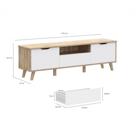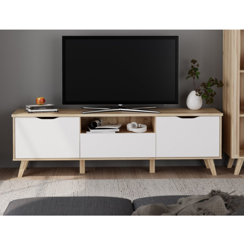 Szafka RTV 180 cm VANKKA będzie funkcjonalnym i wyróżniającym się elementem wystroju Twojego mieszkania. Połącz z innymi meblami z kolekcji, aby stworzyć spójną aranżację wnętrza.