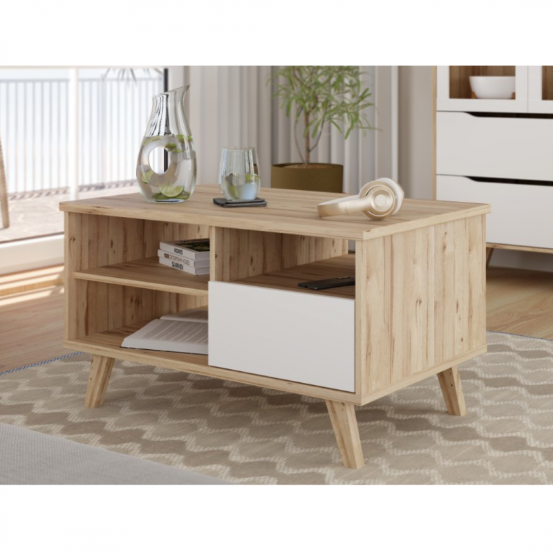 Stolik kawowy VANKKA będzie funkcjonalnym i wyróżniającym się elementem wystroju Twojego mieszkania. Połącz z innymi meblami z kolekcji, aby stworzyć spójną aranżację wnętrza.