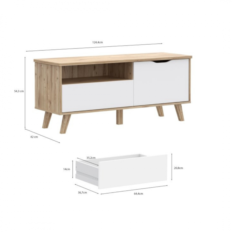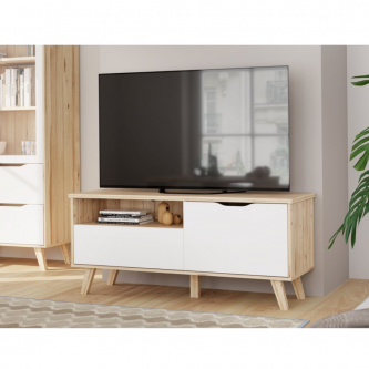 Szafka RTV 125 cm VANKKA będzie funkcjonalnym i wyróżniającym się elementem wystroju Twojego mieszkania. Połącz z innymi meblami z kolekcji, aby stworzyć spójną aranżację wnętrza.