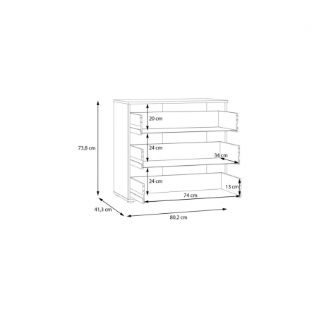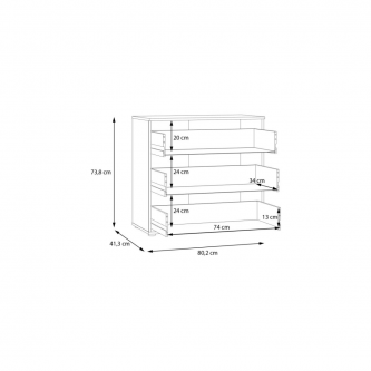 - Mebel o wymiarach: szerokość 80.2 cm x wysokość 73.8 cm x głębokość 41.3 cm, z różnymi opcjami przechowywania