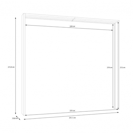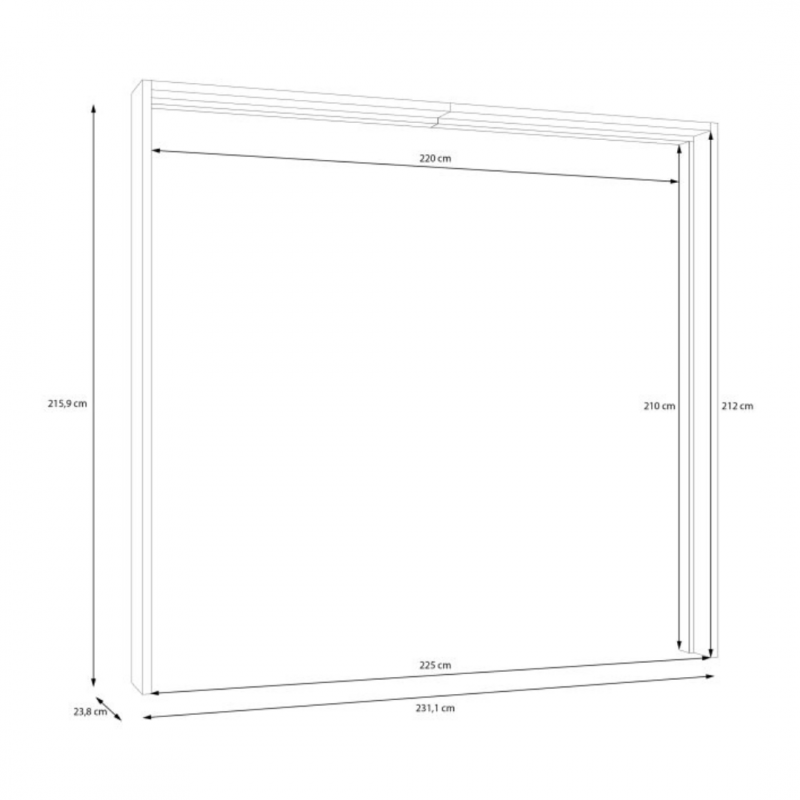 - Wymiary: szerokość: 231,1 cm, wysokość: 215,4 cm, głębokość: 23,8 cm