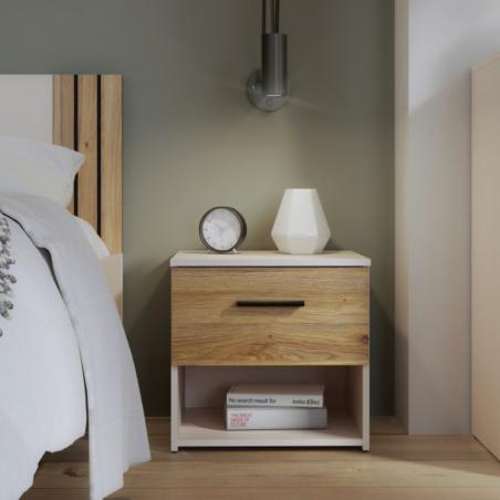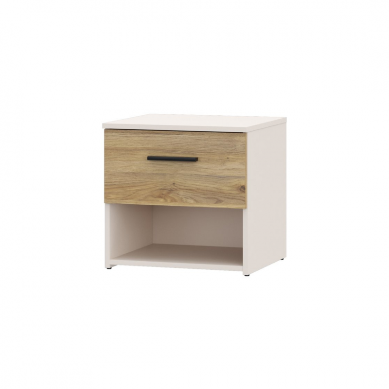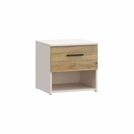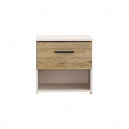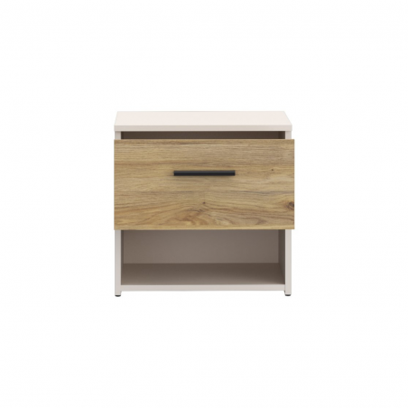 Szafka nocna z kolekcji WAIKATO dopełni aranżację sypialni w stylu nowoczesnym. Na blacie można ustawić lampkę nocną, zegarek lub ozdobną świecę. Starannie zaprojektowane elementy mebla, tj. 1 szuflada i 1 wnęka otwarta, ułatwią przechowywanie leków, kosmetyków i książek. Zestaw szafkę nocną WAIKATO z jednym z łóżek dostępnych w naszej ofercie i ciesz się przytulną oraz ergonomiczną zabudową sypialni.