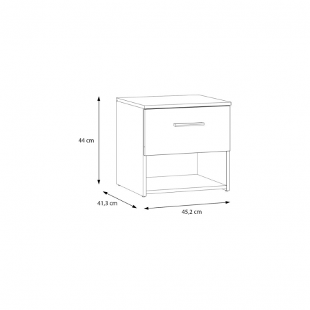 - Szafkę nocną o wymiarach: szerokość 45,2 cm, wysokość 44 cm i głębokość 41,3 cm możesz ustawić nawet w niewielkiej sypialni