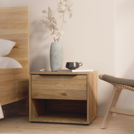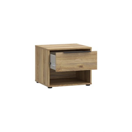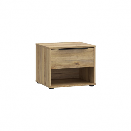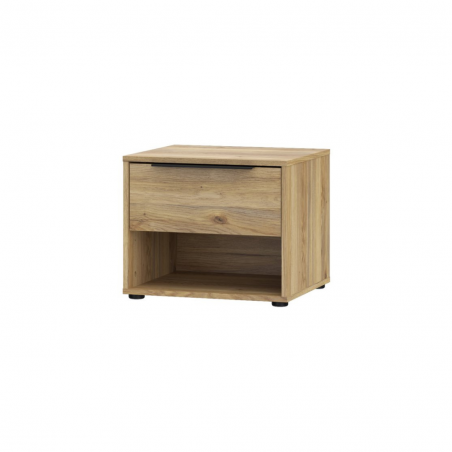 Szafka nocna ORKNEY to niewielki dodatek do sypialni, który może odmienić jej funkcjonalność. Podzielona na część z szufladą oraz otwartą przestrzeń tworzy miejsce na przechowywanie drobiazgów, takich jak leki, kosmetyki i książkę.Na blacie znajdzie się miejsce na telefon, budzik i lampkę nocną. Ustaw szafkę nocna ORKNEY w towarzystwie innych mebli z kolekcji i stwórz spójną zabudowę sypialni.