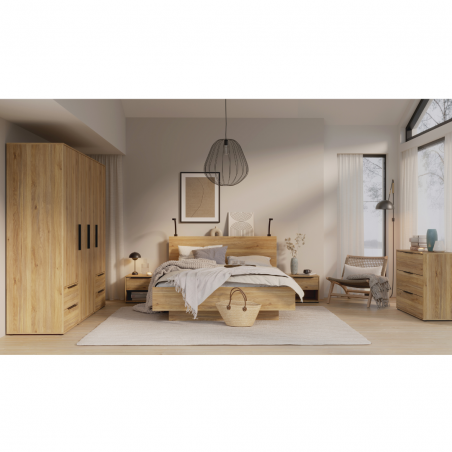 Stwórz w sypialni oazę relaksu, regeneracji i spokoju z kolekcją ORKNEY. Wśród mebli nie zabrakło wygodnego łóżka, szafek nocnych, przestronnej szafy z szufladami i komody. W opcji dostępne oświetlenie do szafek nocnych. Całość utrzymana w dekorze Dąb Mauvella, dzięki czemu aranżacja nabierze charakteru i ciepła.