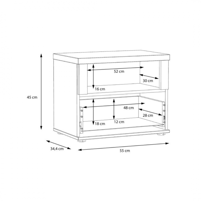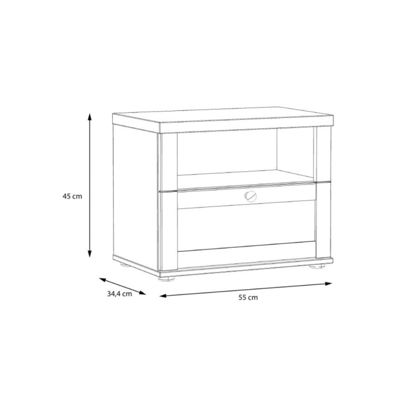 - Wyposażona w szufladę i otwartą półkę