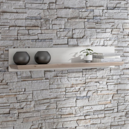 Funkcjonalna i nowoczesna półka ścienna zapewni dodatkowe miejsce do ekspozycji książek, dekoracji i pamiątek.Kontrastowe połączenie kolorów doskonale dopełni inne meble z tej samej kolekcji.Półka ścienna jest idealnym uzupełnieniem aranżacji salonu, jadalni, czy sypialni.