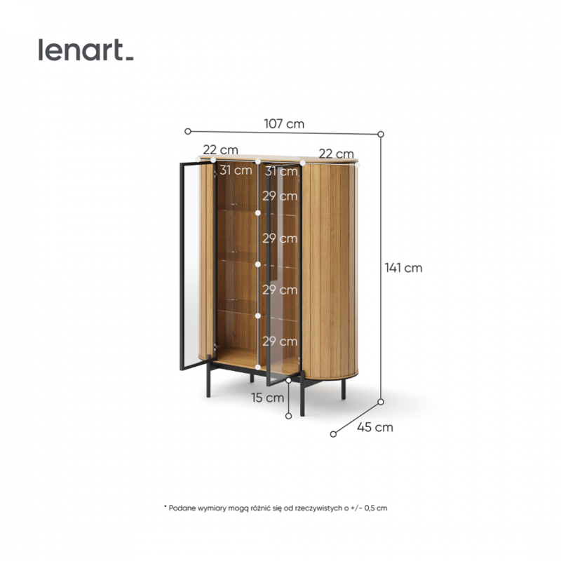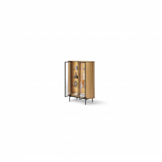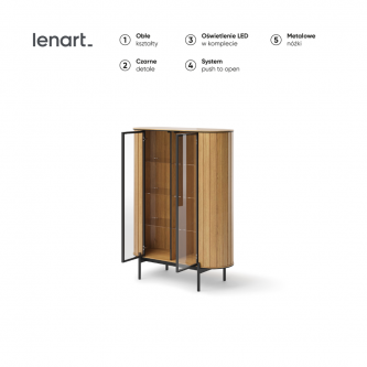 Wykonana z trwałych materiałów, ta witryna z szybami do salonu gwarantuje solidność i długowieczność. Stabilna konstrukcja i staranne wykończenie sprawiają, że mebel nie tylko pięknie wygląda, ale także służy przez lata. Szklane fronty dodają lekkości, optycznie powiększając przestrzeń, co jest szczególnie cenne w mniejszych pokojach dziennych. To idealny wybór dla tych, którzy chcą połączyć praktyczne przechowywanie z elegancją.