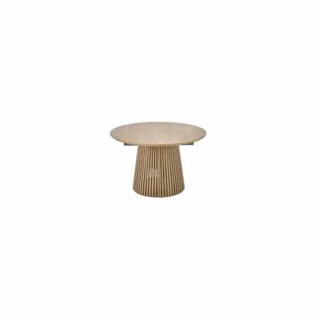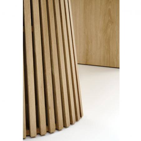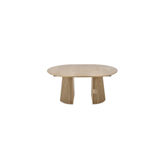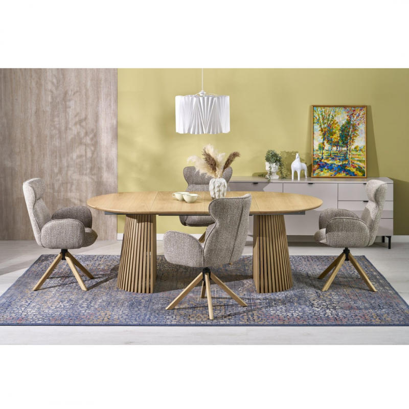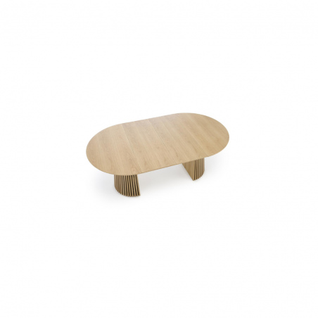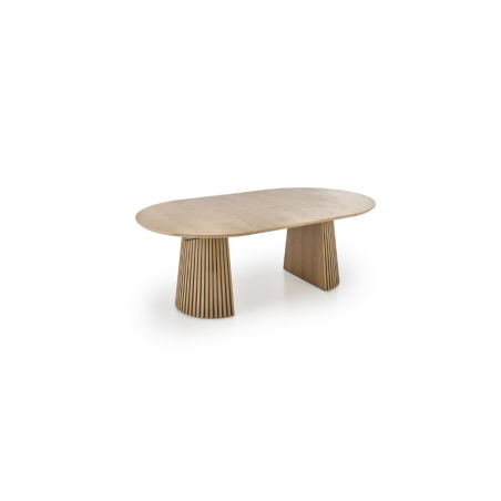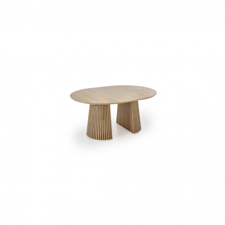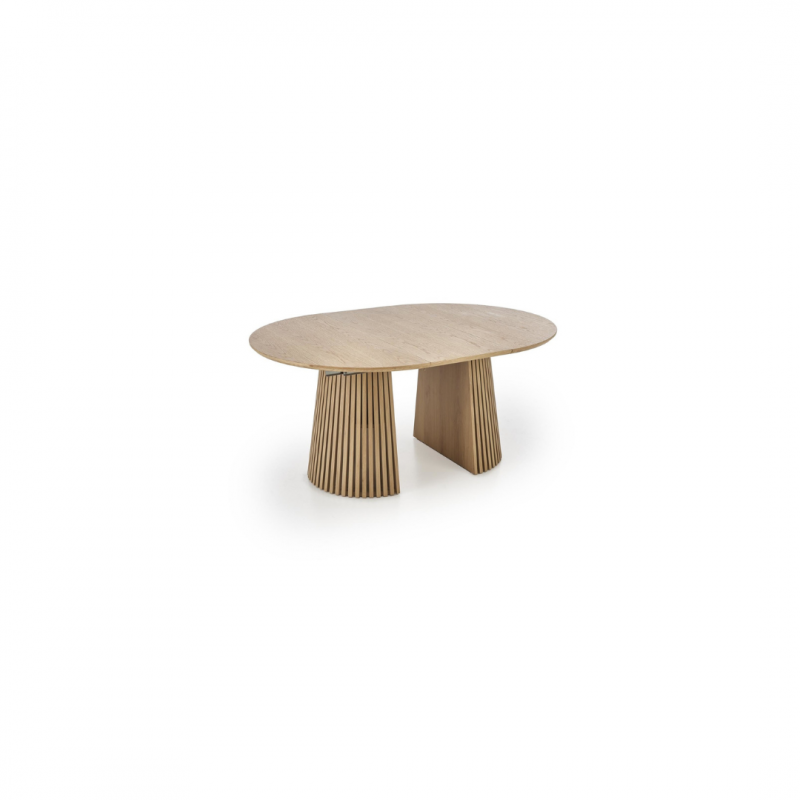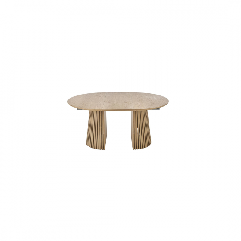 Charakterystycznym elementem stołu są jego nogi, które wyróżniają się efektowną konstrukcją w formie lameli. Taki design nadaje mu unikalny charakter i nowoczesny wygląd, jednocześnie wprowadzając do wnętrza lekkość i elegancję.