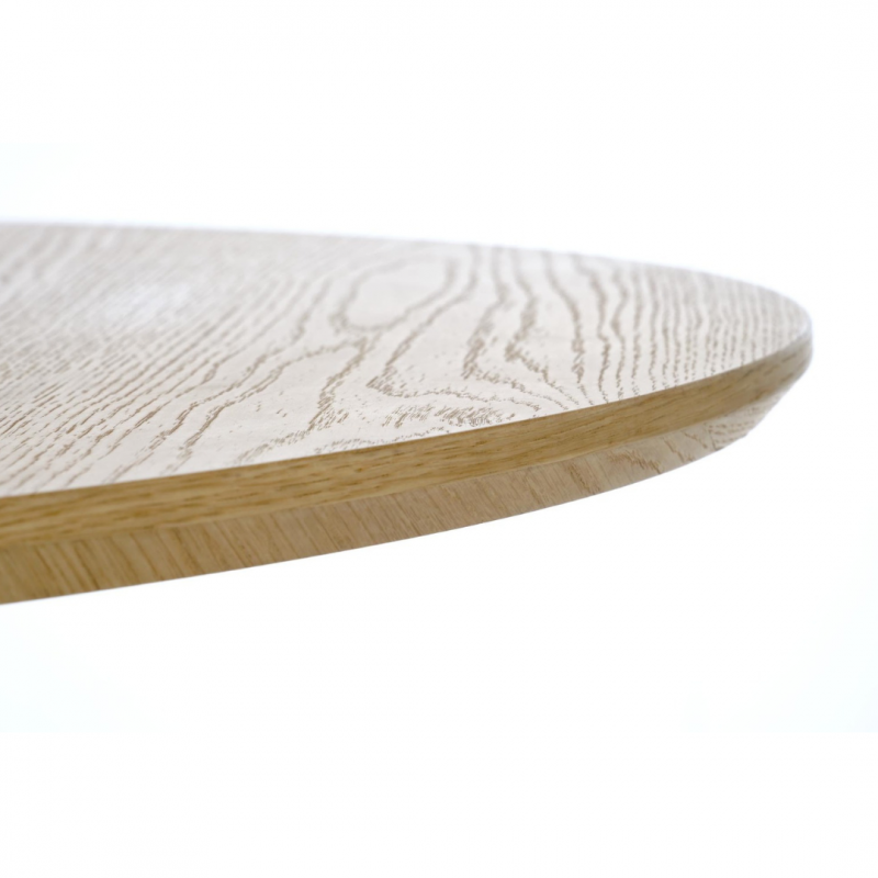 Blat wykonany jest z MDF-u pokrytego naturalną okleiną, co zapewnia trwałość oraz piękny, naturalny wygląd. Kolorystyka utrzymana jest w ciepłych, drewnianych tonach – zarówno blat, jak i nogi mają naturalny odcień drewna.
