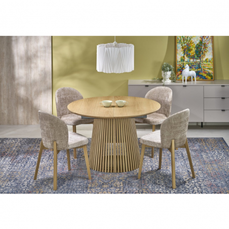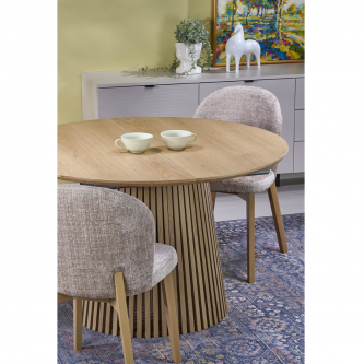 Stół Fargo to elegancki i nowoczesny mebel, który doskonale łączy funkcjonalność z estetyką. Jest to okrągły, rozkładany stół, który świetnie sprawdzi się zarówno w codziennym użytkowaniu, jak i podczas większych spotkań przy wspólnych posiłkach.