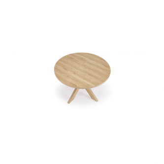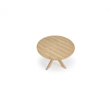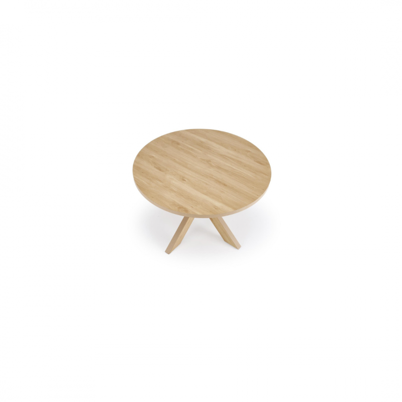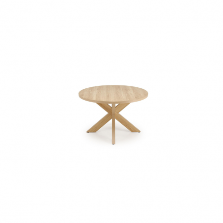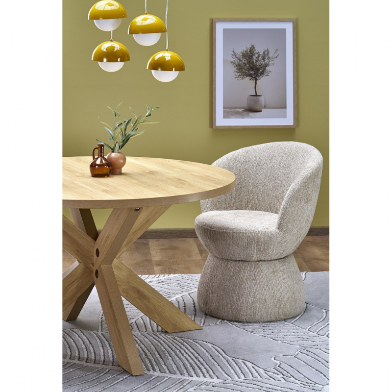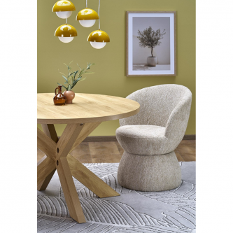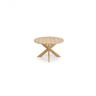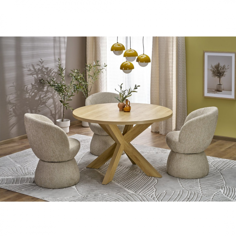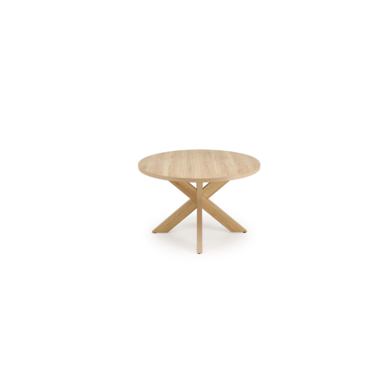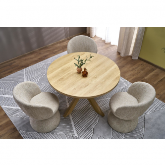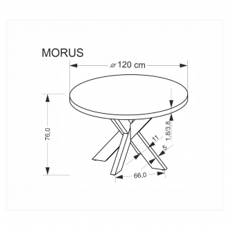 Stół Morus to elegancki i funkcjonalny mebel, który doskonale sprawdzi się w nowoczesnych oraz klasycznych wnętrzach. Jego okrągły blat wykonany jest z MDF-u okleinowanego melaminą, co zapewnia trwałość i odporność na codzienne użytkowanie. Naturalny kolor blatu podkreśla ciepły, minimalistyczny charakter stołu, nadając mu uniwersalny wygląd pasujący do różnych aranżacji.