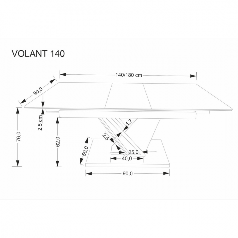 Wymiary: 140-180/90/76 cm, stół rozkładany,