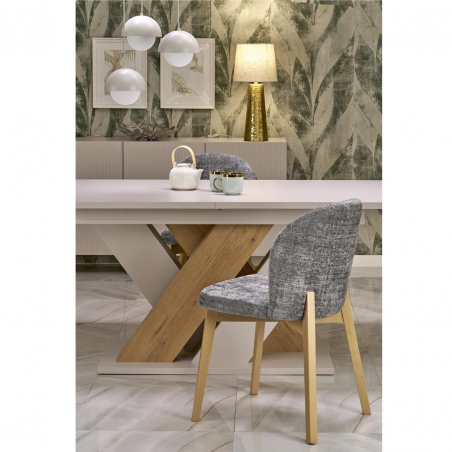 Charakterystycznym elementem designu są nogi w kształcie litery "X", które nadają mu nowoczesnego, a zarazem solidnego wyglądu. To detal, który przyciąga wzrok i wyróżnia Brandon na tle klasycznych modeli.