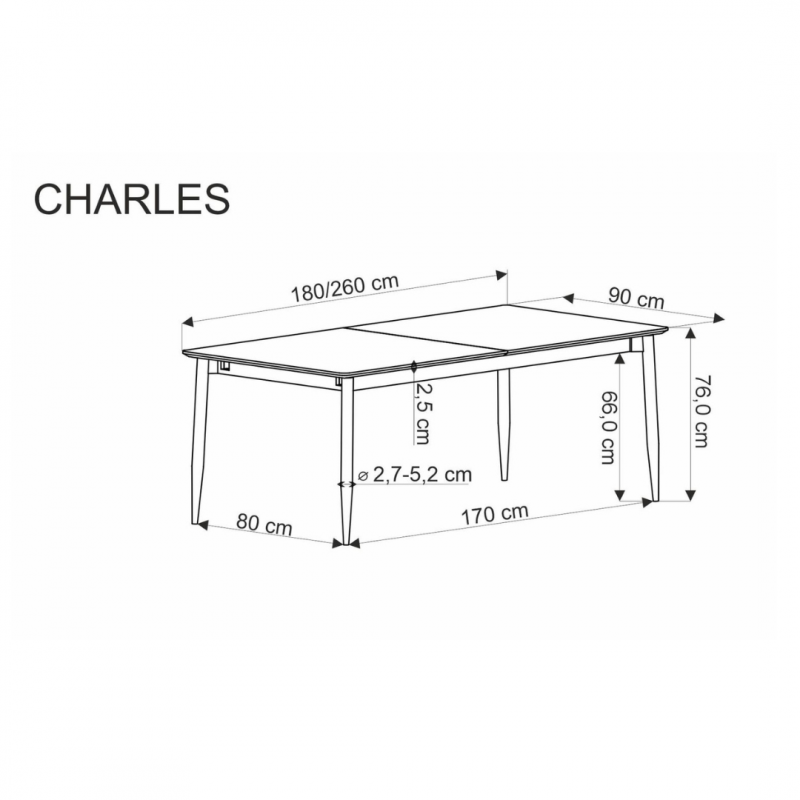 Rozkładany stół Charles to nie tylko praktyczne rozwiązanie dla Twojego domu, ale także elegancki i stylowy element, który z pewnością przyciągnie uwagę. Jego imponujące możliwości rozkładania sprawiają, że bez trudu dostosujesz go do różnych sytuacji - od kameralnych spotkań po większe przyjęcia.