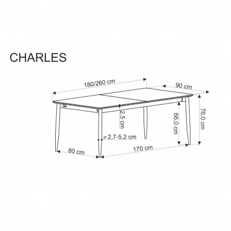 Jego regulowana długość - od 180 do 260 cm - daje Ci swobodę w dostosowywaniu go do zmieniających się potrzeb i liczby gości. W ten sposób z łatwością stworzysz idealne miejsce do wspólnego spożywania posiłków, spędzania czasu z bliskimi i tworzenia niezapomnianych chwil. Zainwestowanie w stół Charles to nie tylko zakup mebla, ale również inwestycja w wygodę i stylowe wnętrze.