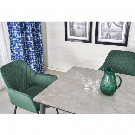 Blat z MDF pokryty melaminą imitującą popielaty marmur nadaje stołu niepowtarzalny, luksusowy wygląd, który z pewnością wzbogaci aranżację Twojego wnętrza. To nie tylko praktyczny mebel, ale także designerski dodatek, który podkreśli unikalny charakter Twojego domu.