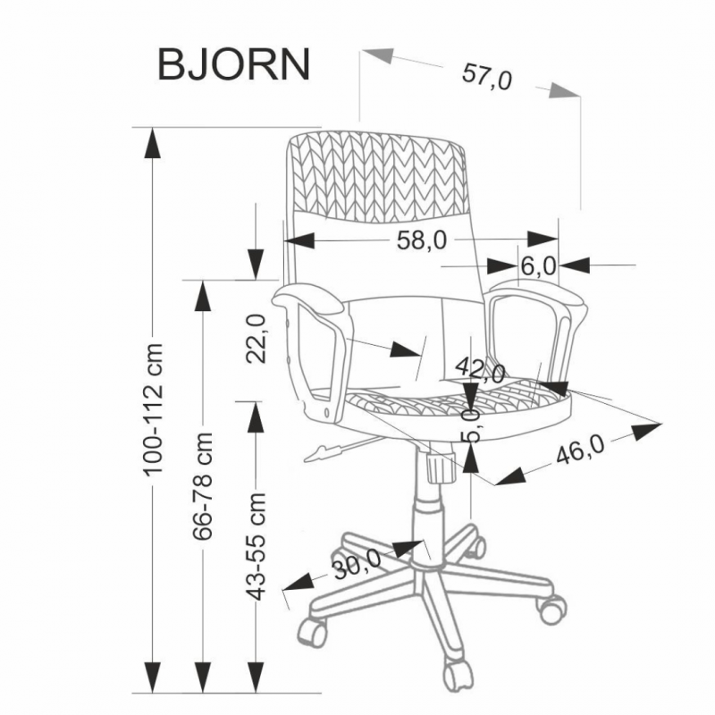 Fotel obrotowy BJORN o wymiarach: 58/57/100-112/43-55 cm,