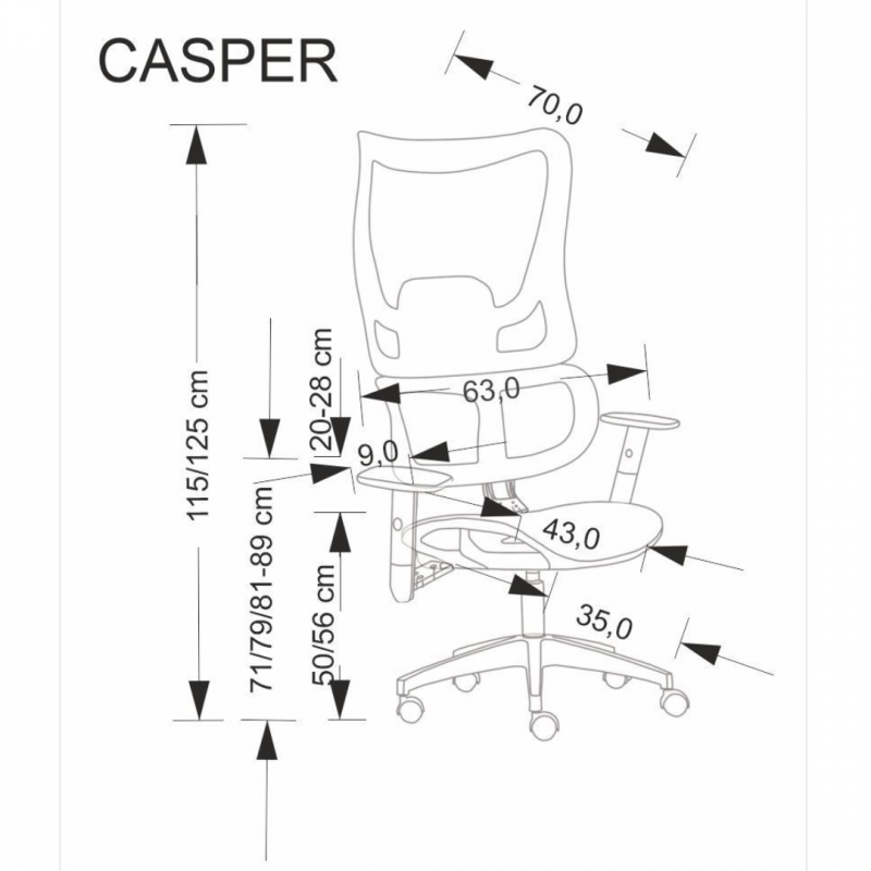 Fotel obrotowy CASPER o wymiarach: 63/70/115-125/50-60 cm,