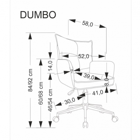 Fotel obrotowy DUMBO o wymiarach: 52/58/84-92/46-54 cm,
