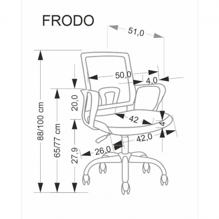 Fotel obrotowy FRODO o wymiarach: 50/51/88-100/47-59 cm,