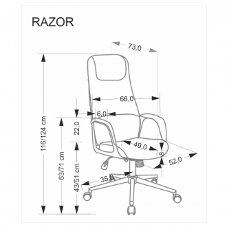 Fotel obrotowy RAZOR o wymiarach: 66/73/116-124/43-51 cm,