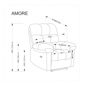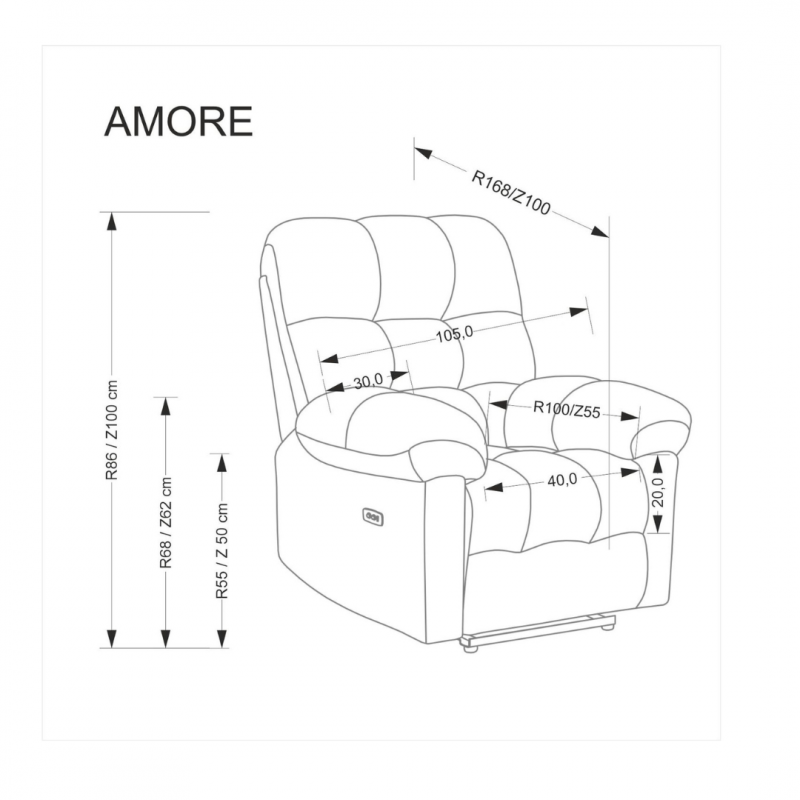 Fotel AMORE o wymiarach: 105/168-100/86-100/55-50 cm,