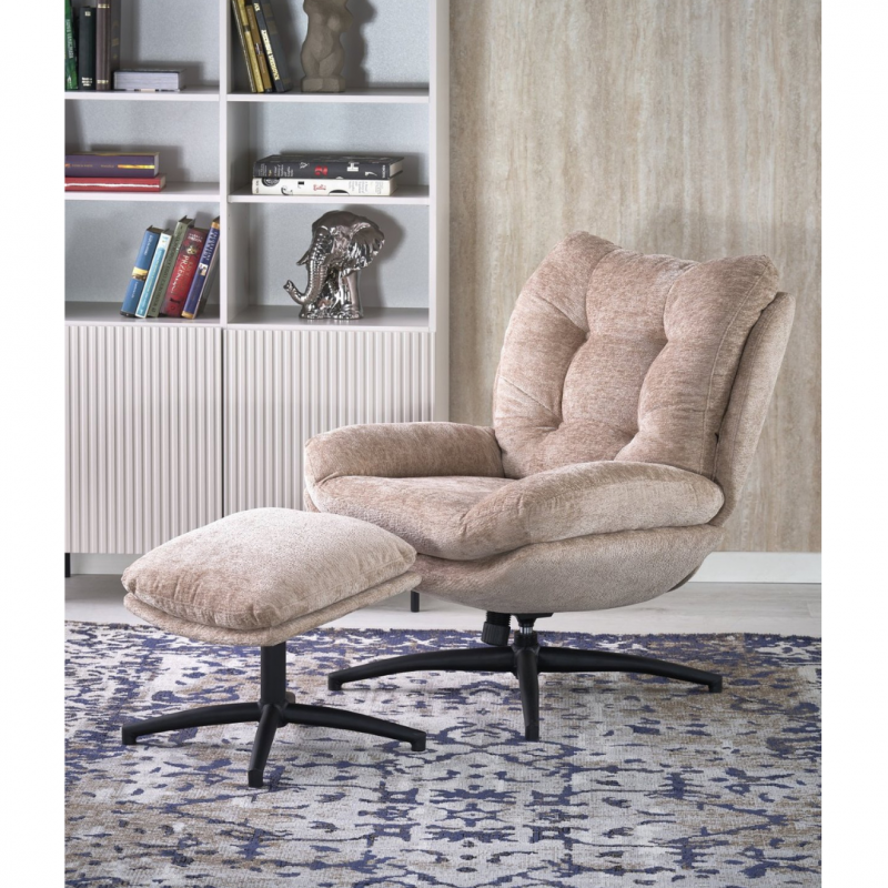 Fotel z podnóżkiem / funkcja kołyski, materiał: tkanina, kolor: beżowy,