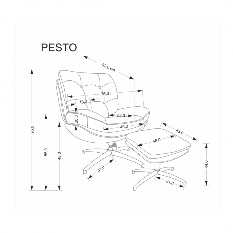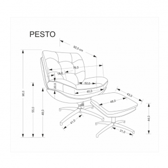 Fotel PESTO o wymiarach: 76/92/96/48 cm, podnóżek 48/43/44 cm,