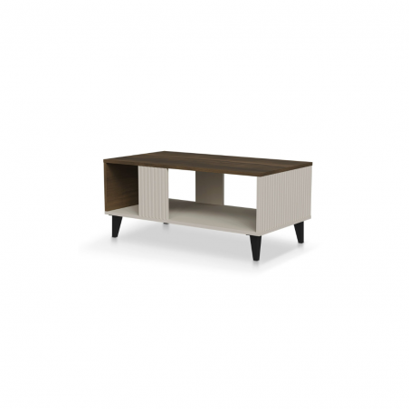 Meble wykonane są z wysokiej jakości materiałów, takich jak MDF okleinowany, płyta meblowa okleinowana oraz polipropylen, co zapewnia im trwałość i łatwość w pielęgnacji. Kolorystyka tej kolekcji to harmonijne połączenie odcieni kaszmiru, orzecha i czerni, które nadają wnętrzu elegancji oraz nowoczesnego charakteru. Subtelne, ale jednocześnie wyraziste zestawienie tych barw wprowadza do pomieszczeń ciepło i przytulność, a zarazem odrobinę klasycznej elegancji.