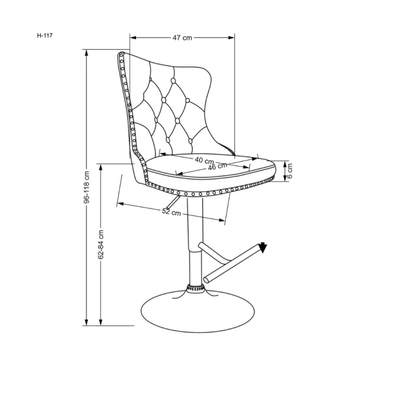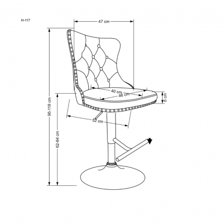 Hoker z funkcją regulacji wysokości H117 o wymiarach: 47/52/96-118/62-84 cm,