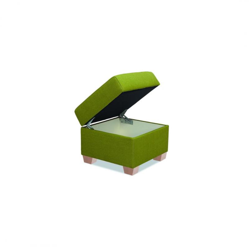 Zgrabna, elegancka i pojemna pufa. Element ozdobny stanowią drewniane nóżki.